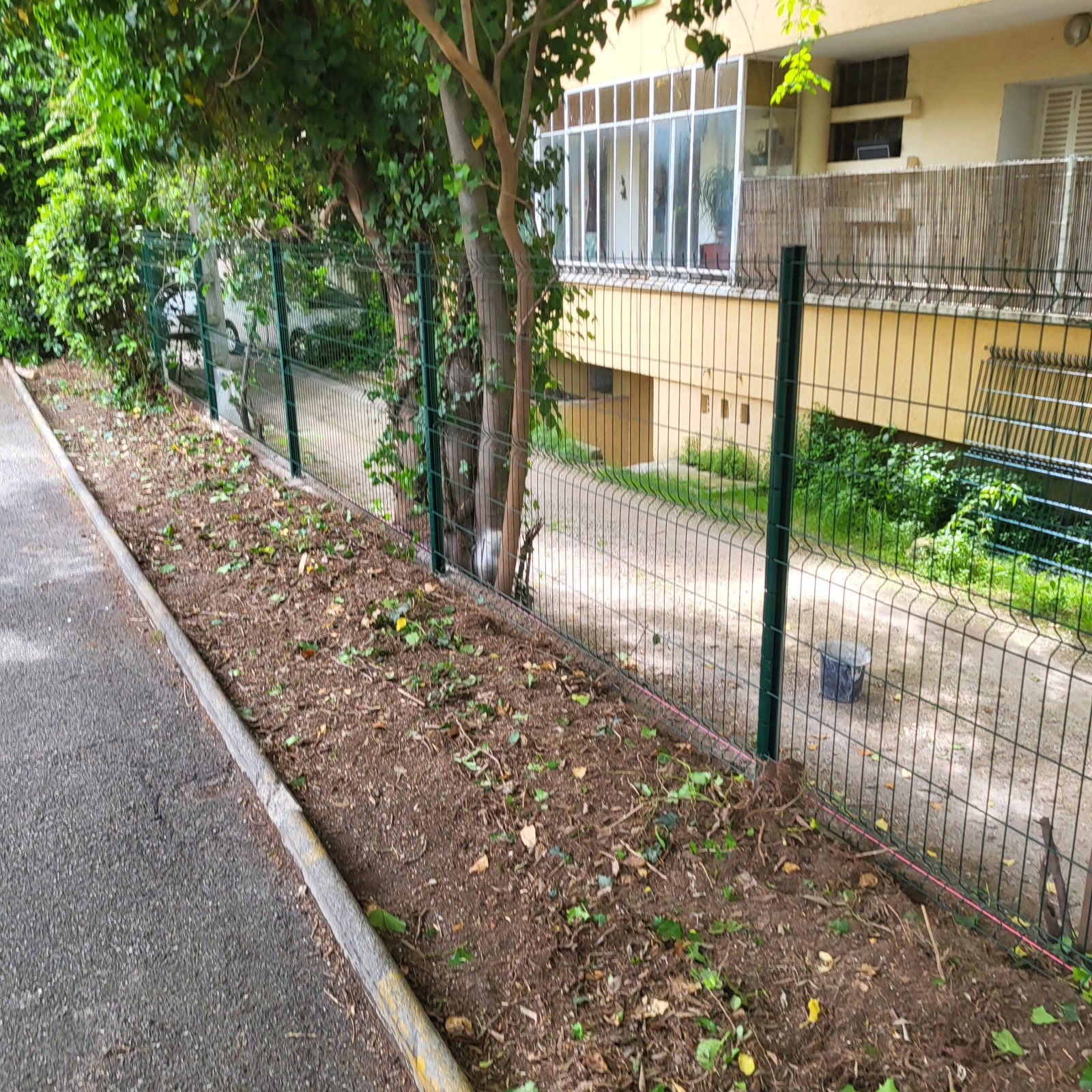 La société ABC CLOTURES a réalisé la pose d une cloture en panneaux rigides avec des poteaux sur platine dans le centre ville d Aix-en-Provence pour une résidence privé.